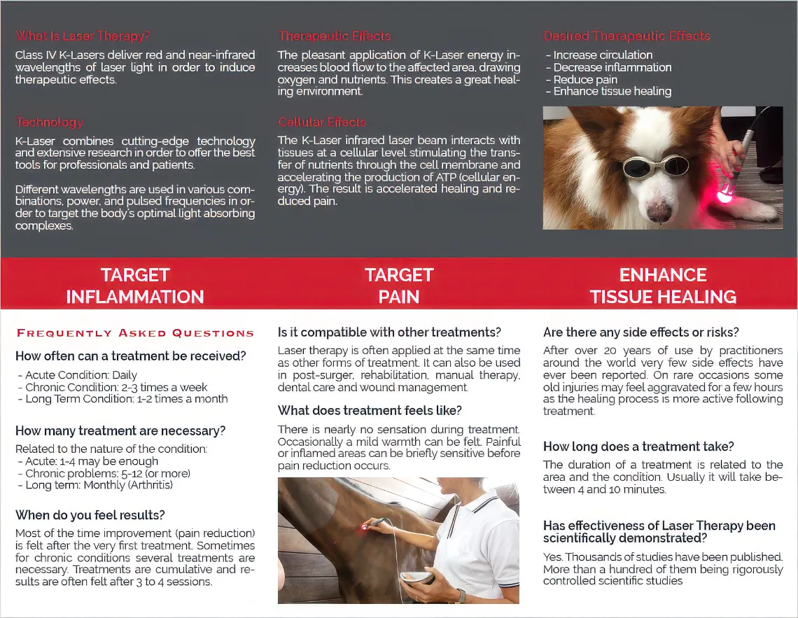 It’s a very non-invasive cost-effective type of treatment. Pets that have experienced crippling pain and undergone laser therapy have had improvements in their quality of life that has been amazing.